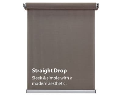 - Straight drop or standard ‘Blinds’ designed for outside weather conditions: These are blinds that have a set of brackets, a tube, some way of raising and lowering and optionally a system to tie the blind to the ground to prevent movement like straps or clips. They’re an effective low cost option.